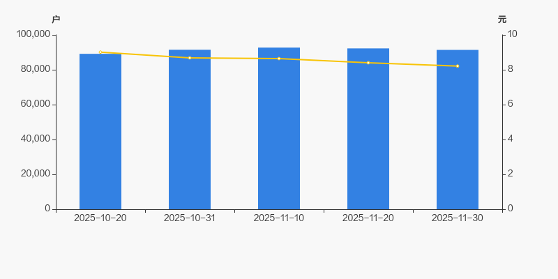 2025年10月20日至今,公司股东户数有所增长,区间涨幅为2.52%。2025年10月20日至2025年11月30日区间股价下降8.84%。