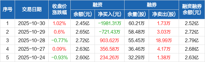 燕京啤酒:融资净偿还1981.31万元,融资余额2.45亿元(10-30)