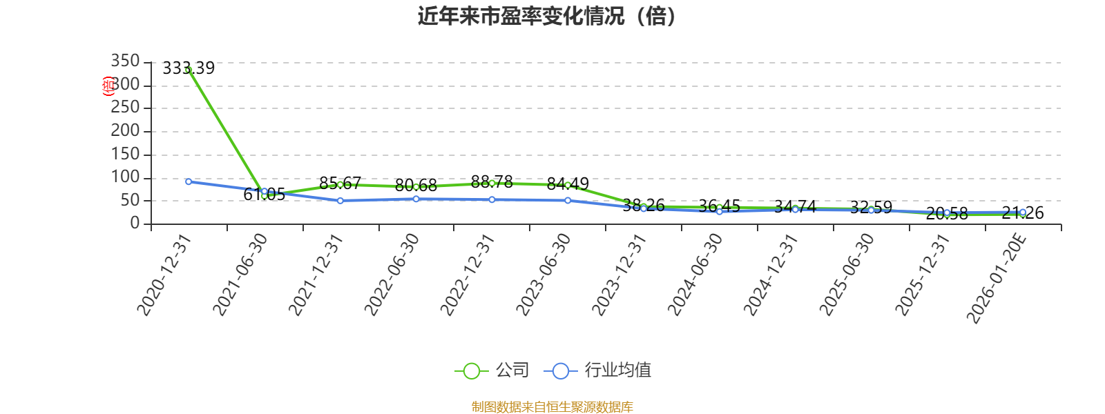 以本次披露业绩预告均值计算,公司近年市盈率(TTM)图如下所示: