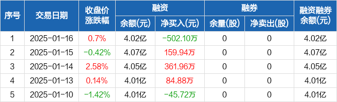 四川美丰:融资净偿还502.1万元,融资余额4.02亿元(01-16)