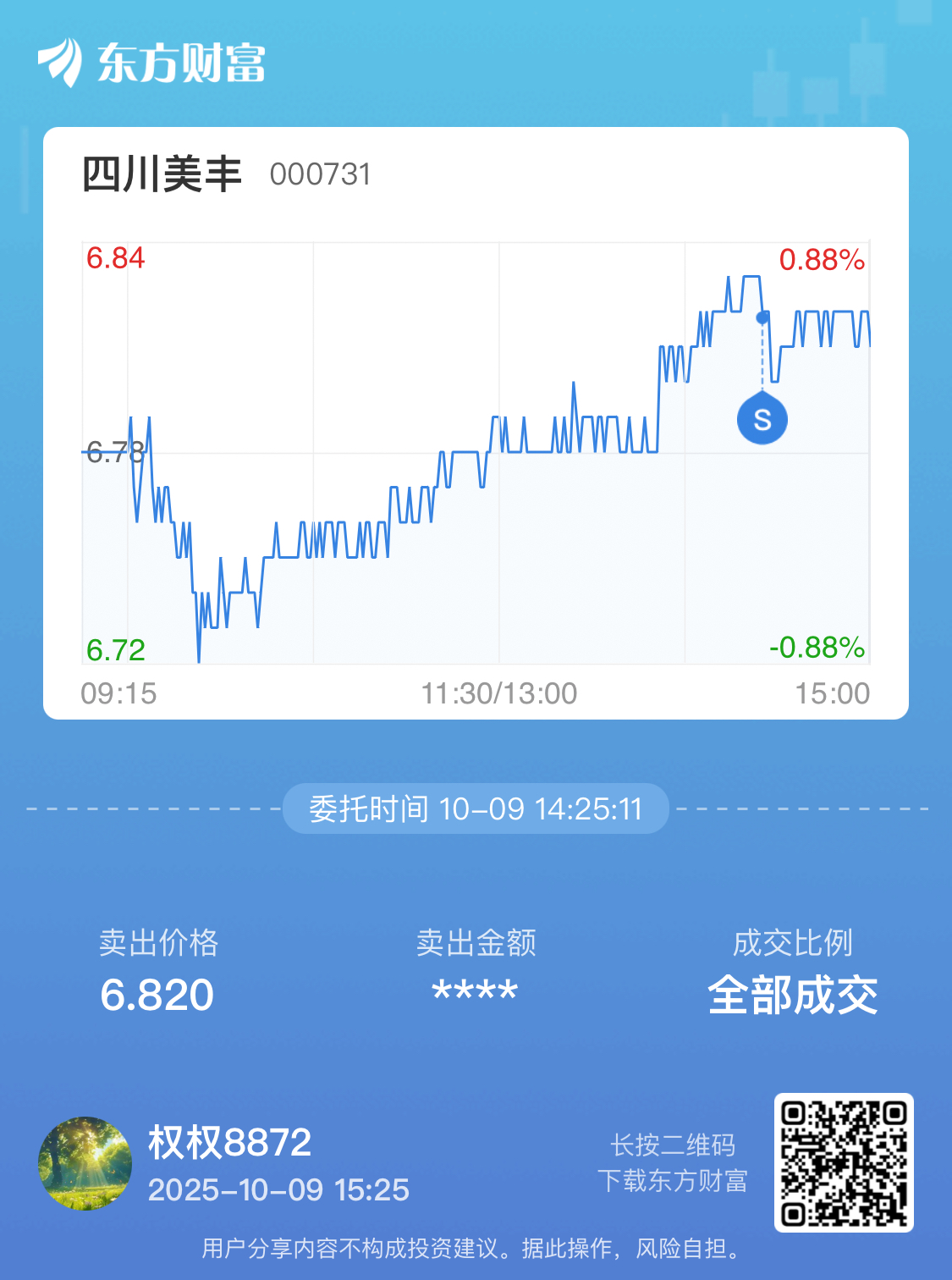 委托标的:买卖方向:笔记:挣了4分钱,回家买二手白酒,涨天上也来了