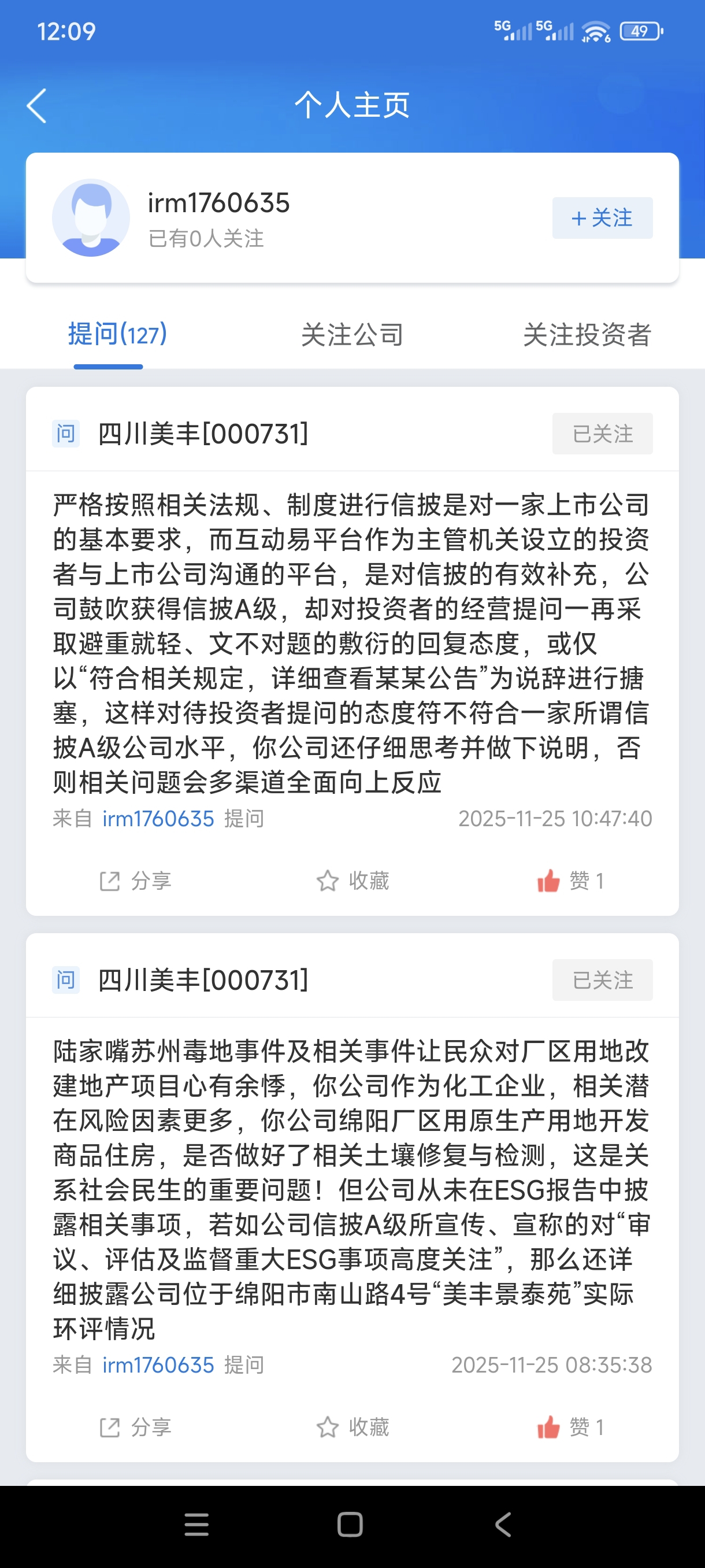 $四川美丰(SZ000731)$ 王东董秘你好,这位朋友提问的问题很好,希望你不要油腻了,拿出你们的认真态度,逐个回答,给广大投资者一个解释,谢谢了。