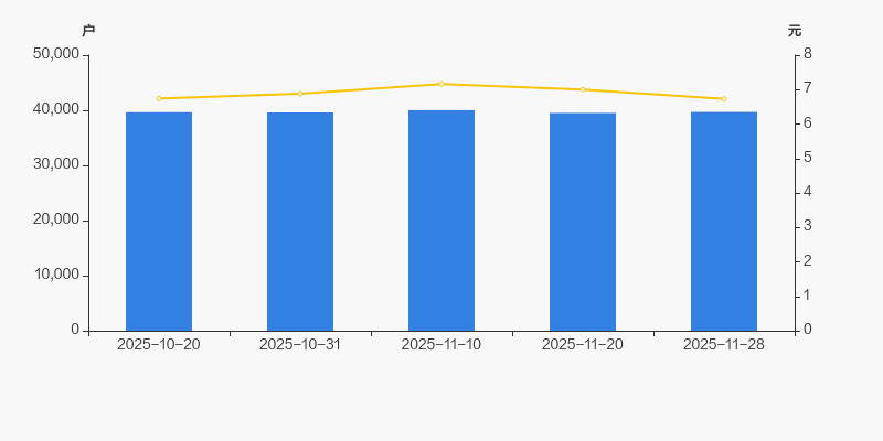 2025年10月20日至今,公司股东户数有所增长,区间涨幅为0.10%。2025年10月20日至2025年11月28日区间股价下降0.15%。
