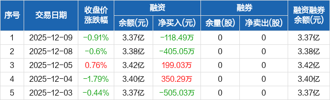 四川美丰:融资净偿还118.49万元,融资余额3.37亿元(12-09)