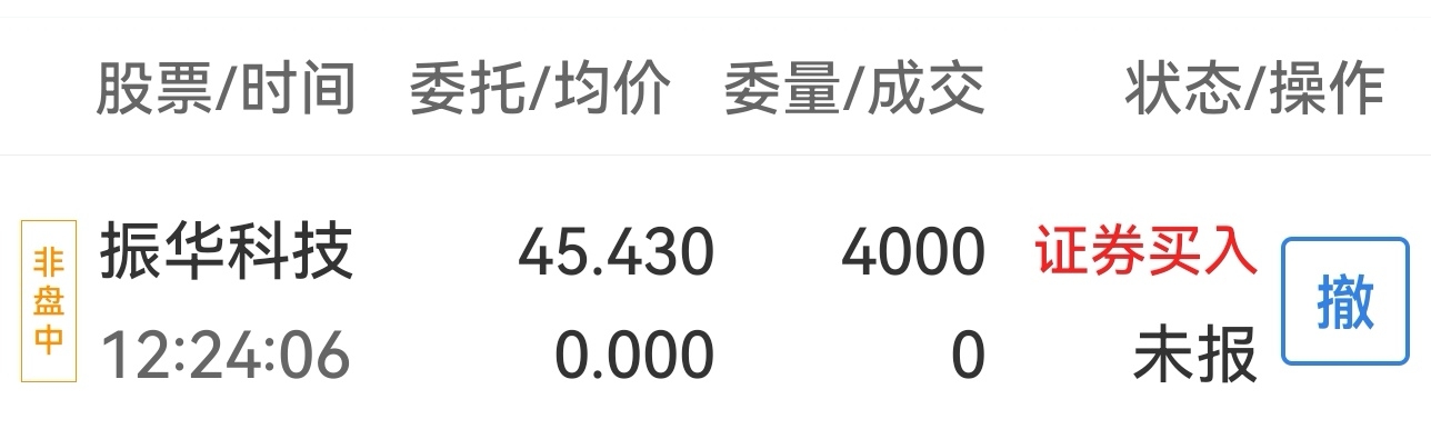 $振华科技(SZ000733)$ 我每天挂单45.43元慢慢等机会,多一分都不介入!!!