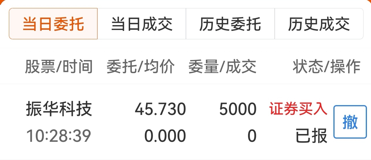 $振华科技(SZ000733)$ 每天挂单45.73元买入,多一分都不入!!!