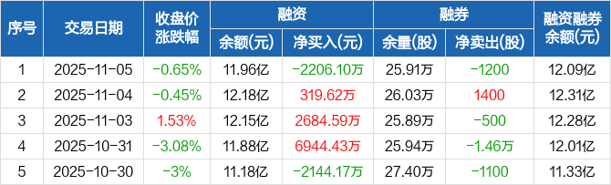 振华科技:融资净偿还2206.1万元,融资余额11.96亿元(11-05)
