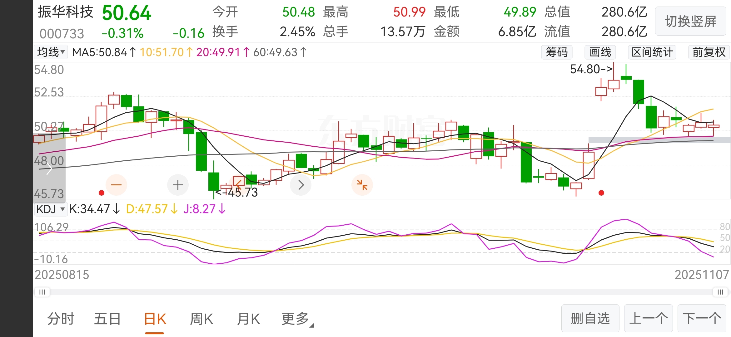 $振华科技(SZ000733)$ 主力高抛低吸震荡消化需要点时间, 心急的朋友可以选择其他标的。闲看庭前花开花落;去留无意,漫随天外云卷云舒。
