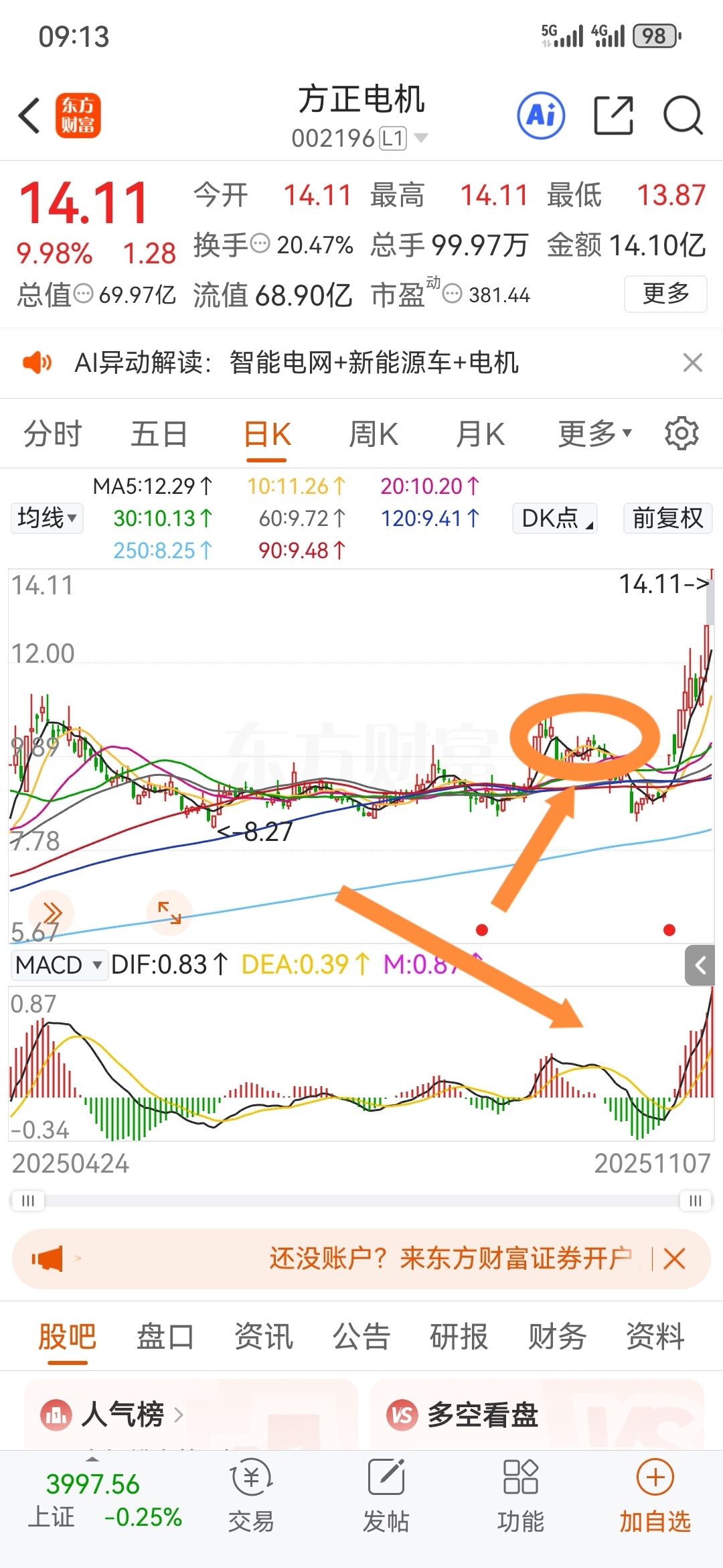 参考方正电机走势。未来一定是大牛。但是不排除macd死叉。大家提防。增量资金来不