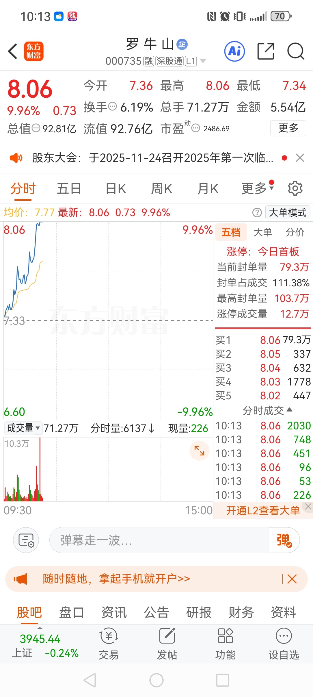 $罗 牛 山(SZ000735)$ 逆所有板块而行,也是很厉害的了,不是一般猪能干出来的,均线周年月,看,要爆涨了,就是没有猪立也比现在有涨的好,还一天的那么多托在唱。