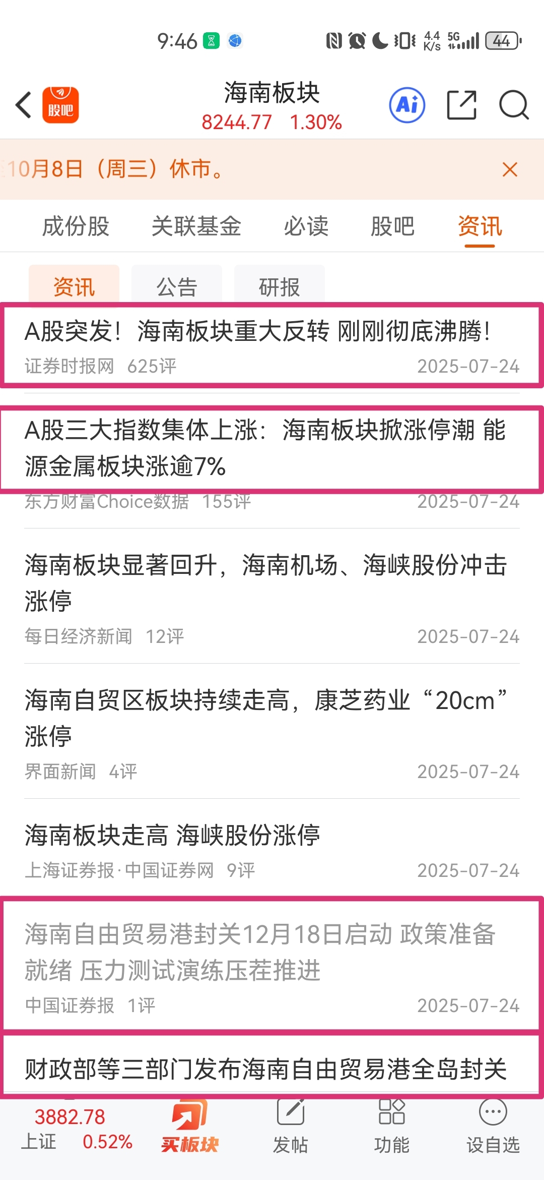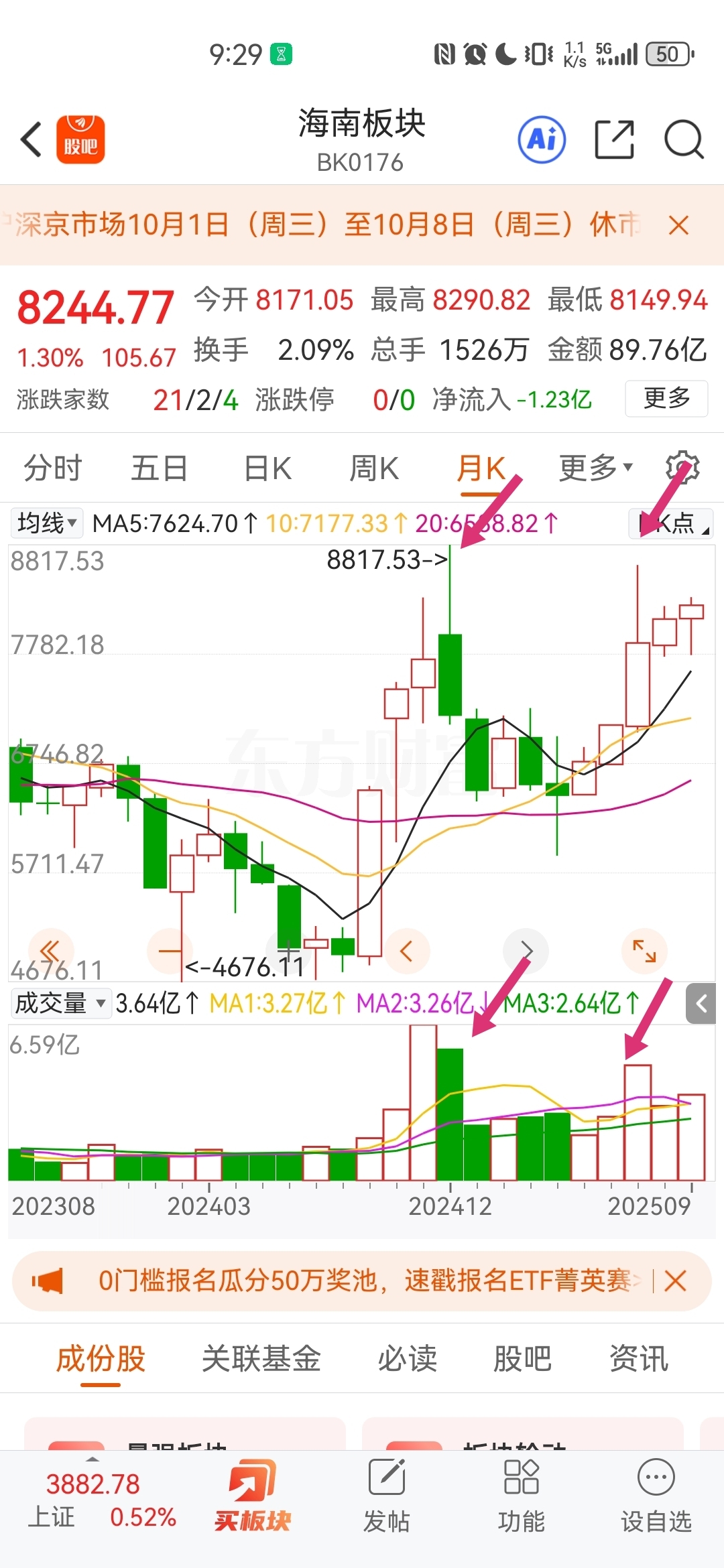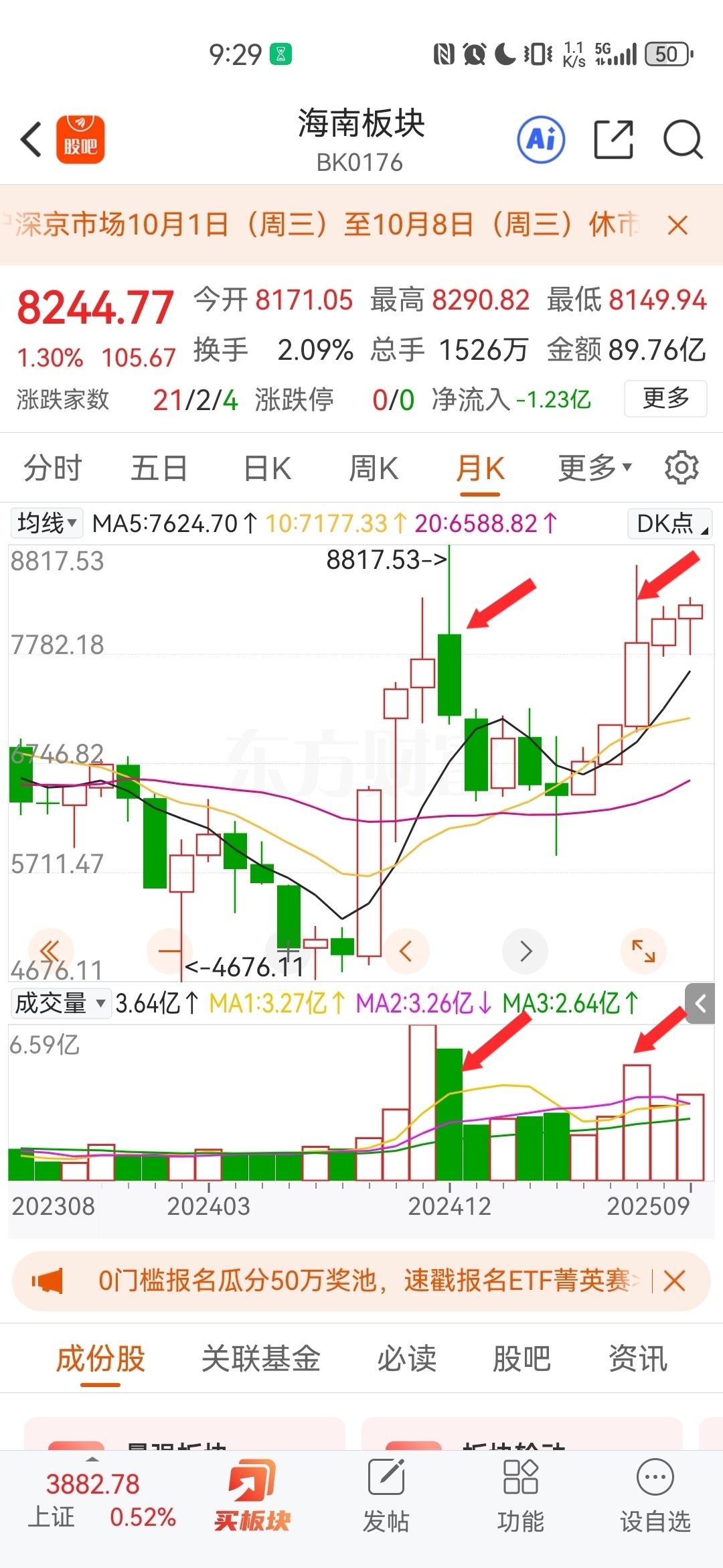 即便我的判断不一定对,海南板块4季度的行情依旧确定性极强,一定比7月24日那一波的试盘行情强,也一定能突破去年924行情的高点后进一步大幅度拉升。