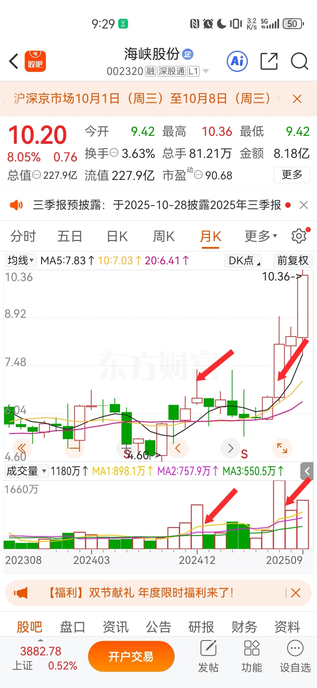 海南板块里面也有分化,例如龙头海峡股份,去年924行情就表现不佳,而本轮行情是绝对的龙头,大概率带领海南板块冲击去年924行情高点。