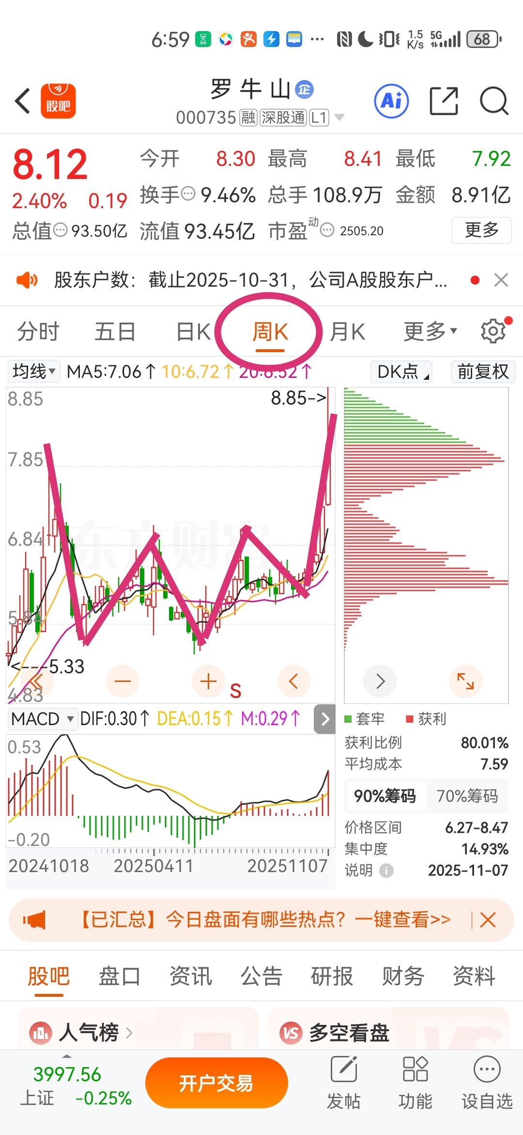 周线、月线都是头肩底。周线右肩已经张开,似雄鹰展翅。月线预计将在12月18日前后
