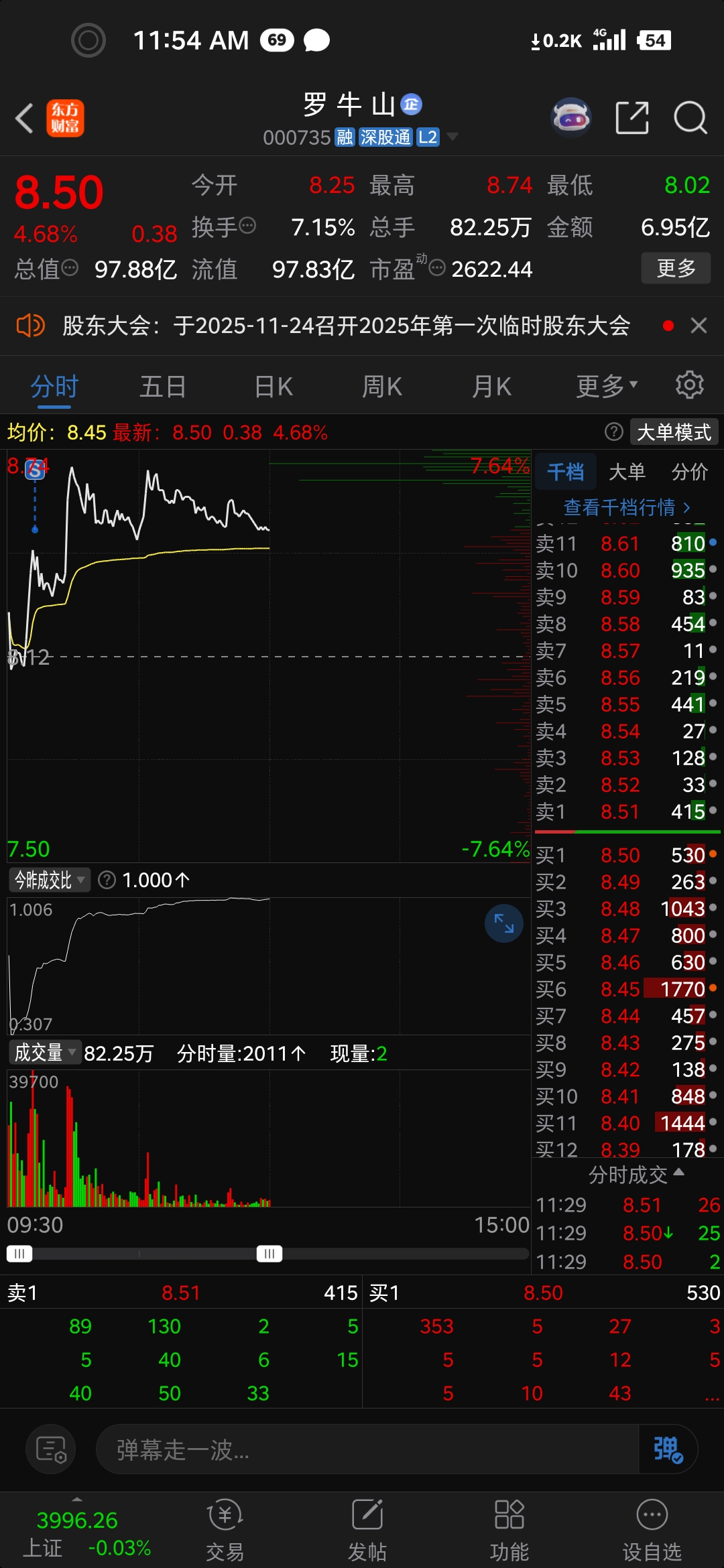 $罗 牛 山(SZ000735)$ 跑早了,又砸回卖的位置……