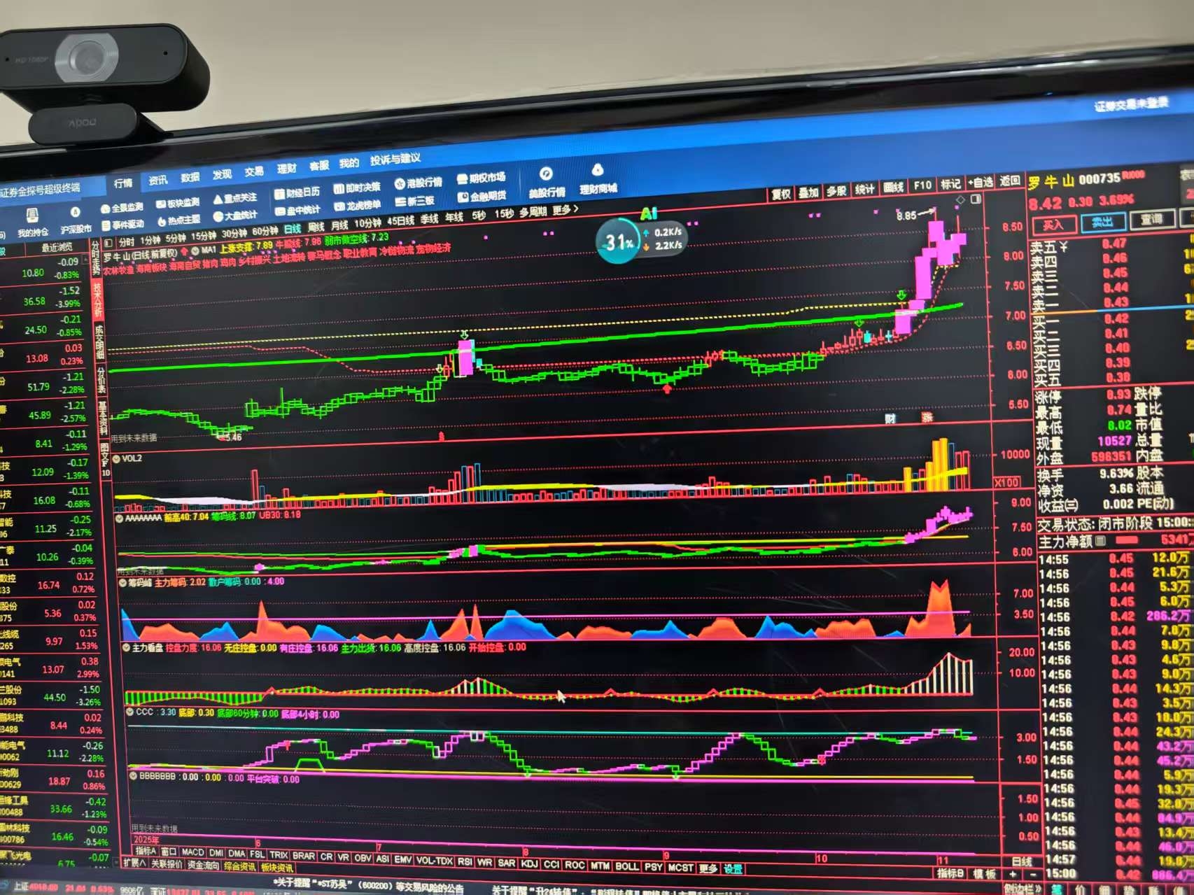 进出两次罗牛山,里面的资金红通通,像要搞大行情,就是龙头海马冲高回落,不知道明天