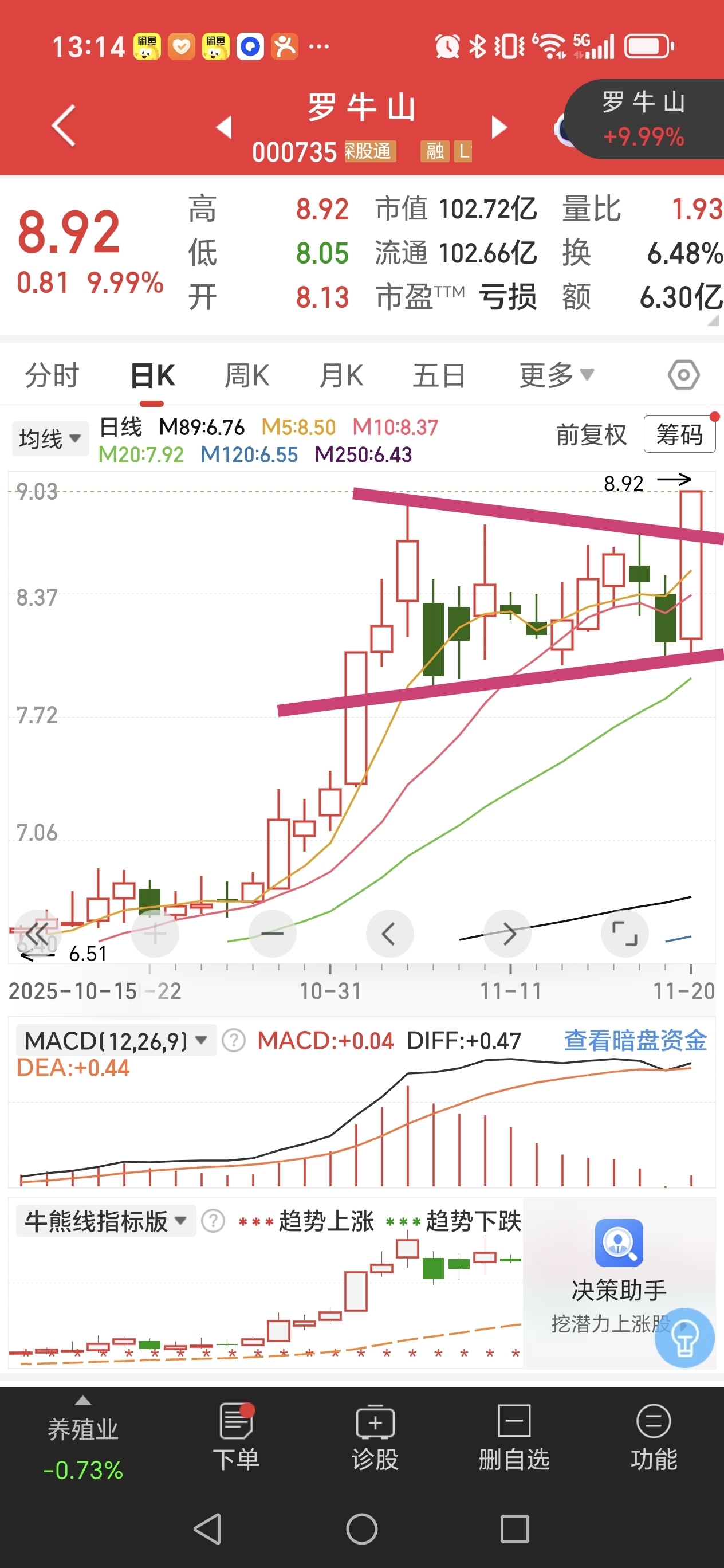 涨停突破旗型整理,只要回撤不低于8.48,未来一两周,大概率要冲12以上,都不用