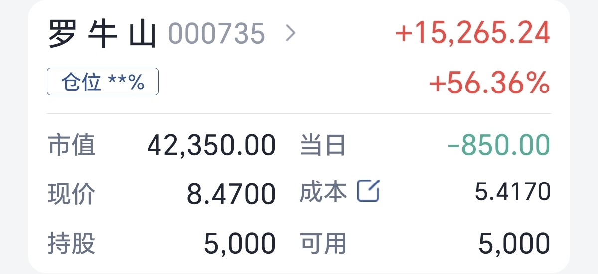 $罗 牛 山(SZ000735)$ 留一点看着主力,你随便表演吧