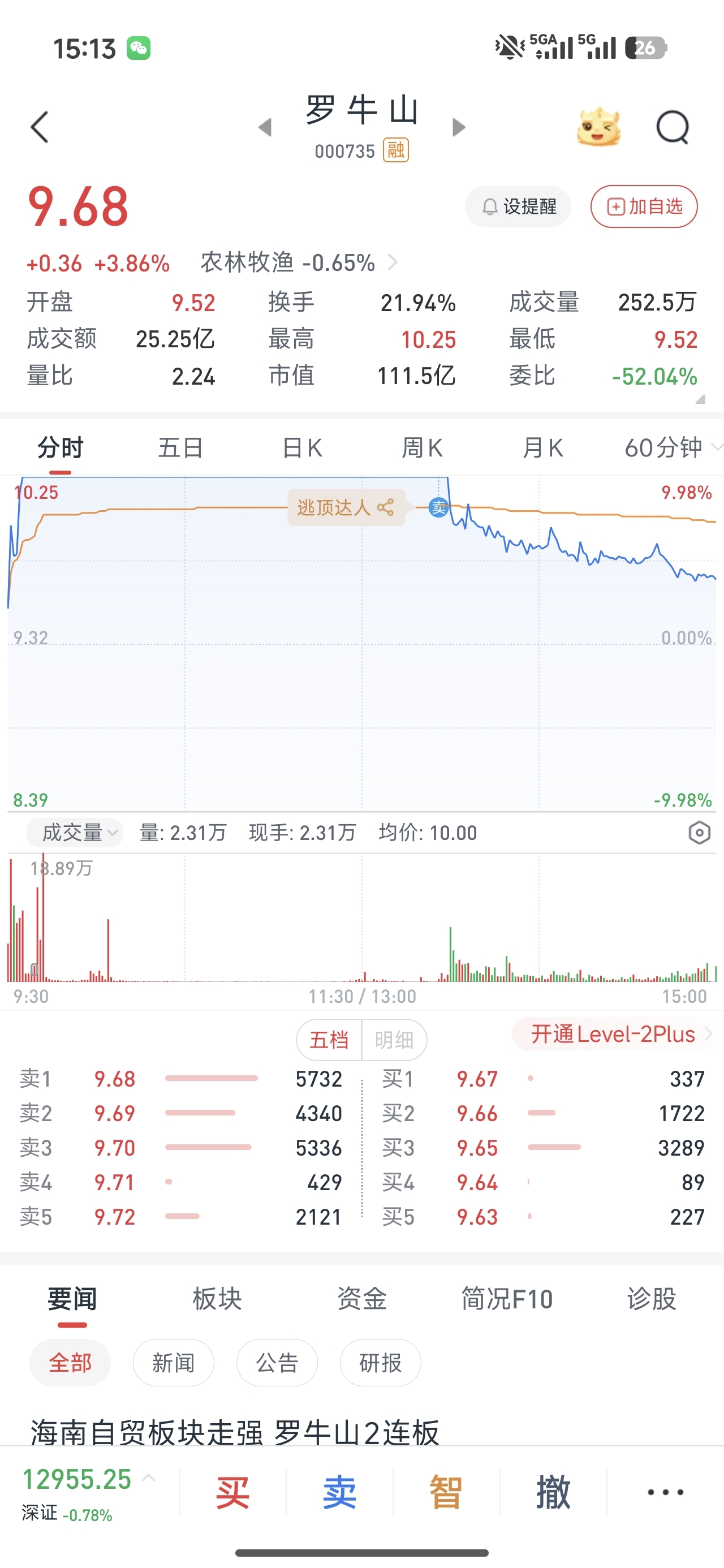 $罗 牛 山(SZ000735)$ 不会因为我卖了70手导致的吧