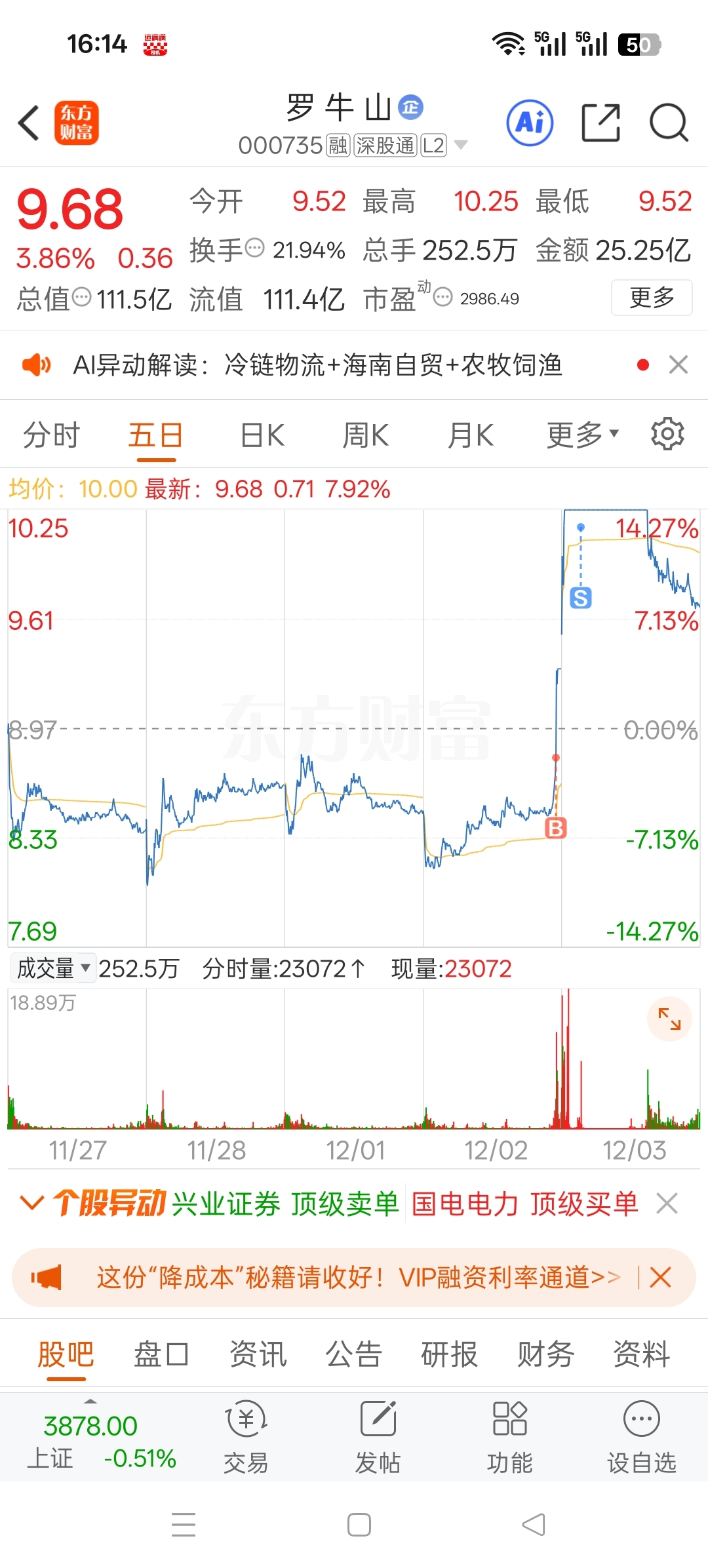 $罗 牛 山(SZ000735)$ 谢谢主力给的红包