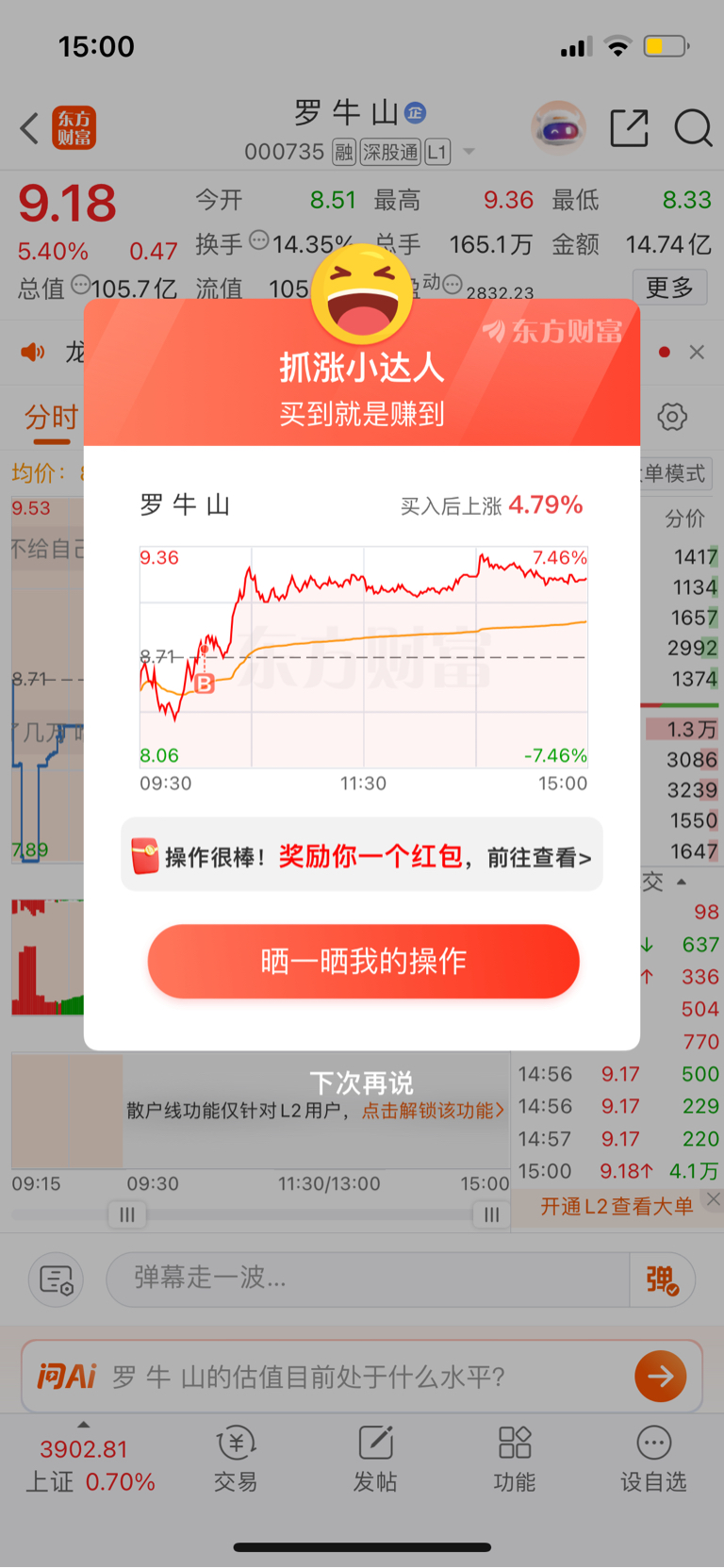 $罗 牛 山(SZ000735)$ 周一能有溢价么