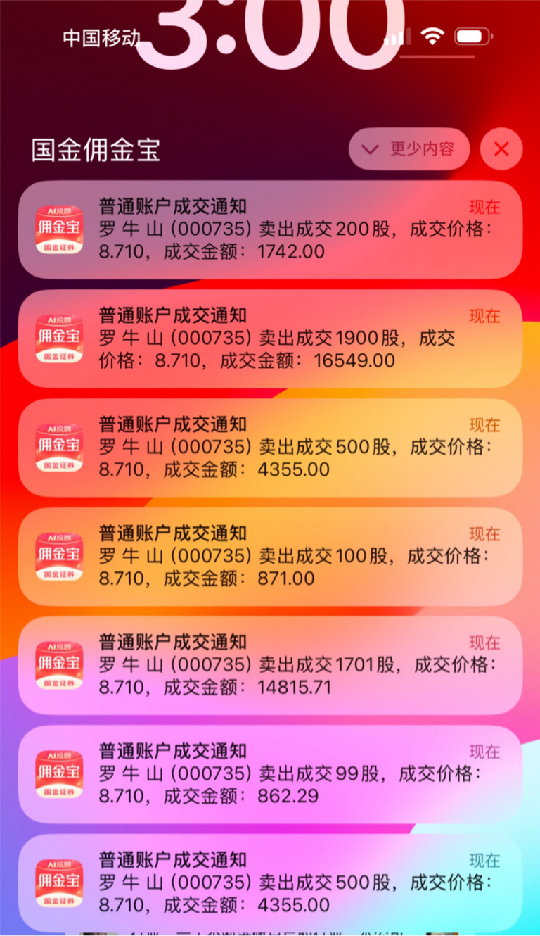 $罗 牛 山(SZ000735)$ 昨天集合竞价被洗出去了