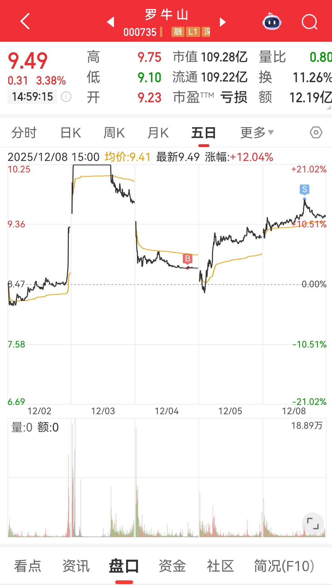 $罗 牛 山(SZ000735)$ 兄弟们 先走一下 下次再来