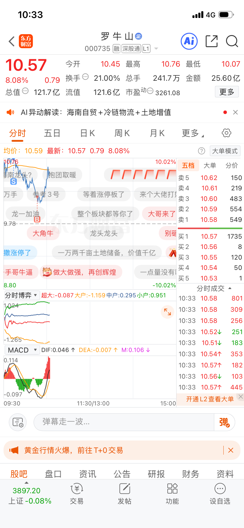 $罗 牛 山(SZ000735)$ 满仓卖出半仓接回。明天不知道是肉还是面,没谱。