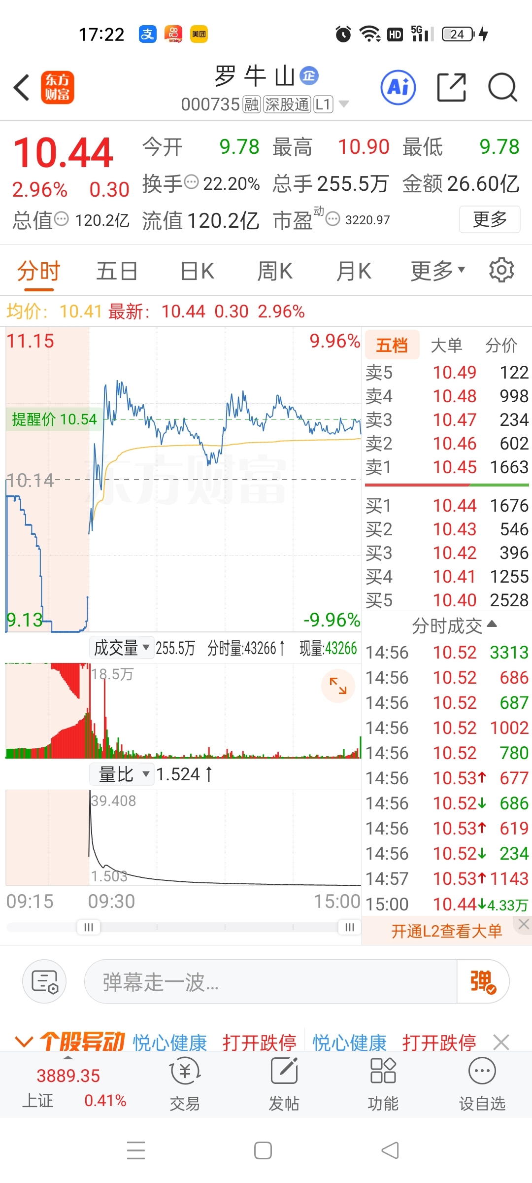 $罗 牛 山(SZ000735)$ 量够价不够,周一低吸