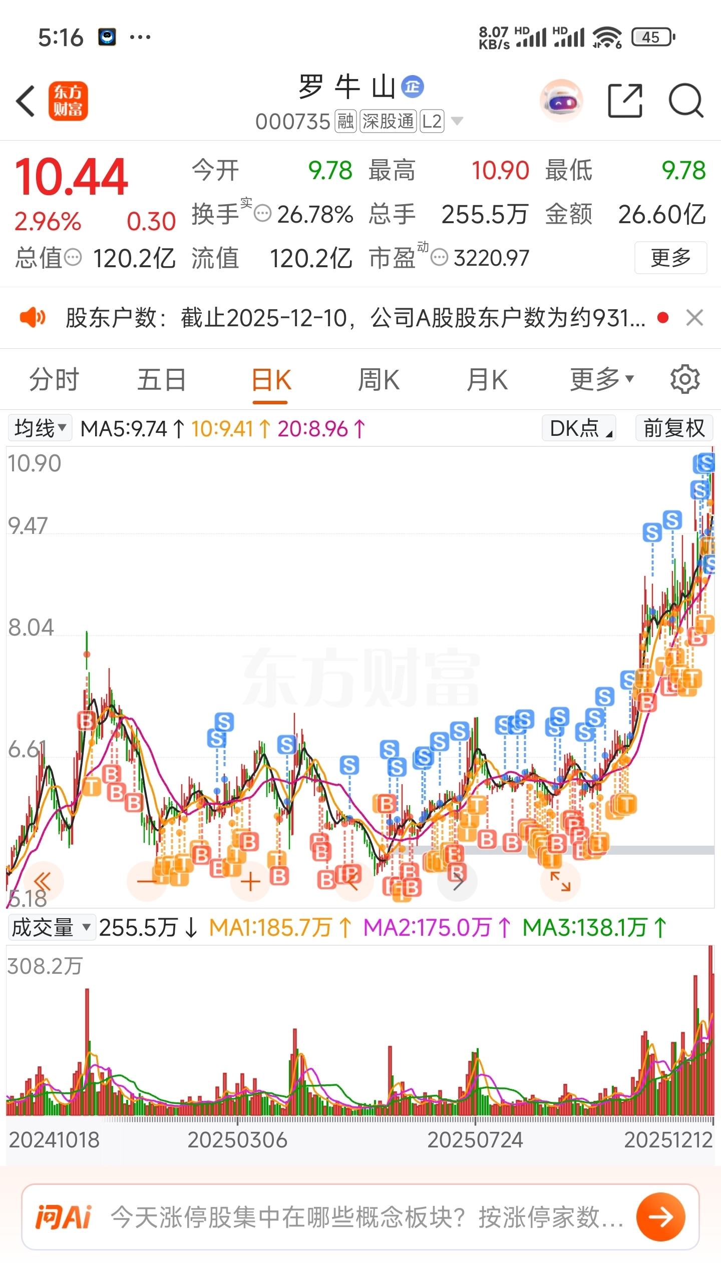 $罗 牛 山(SZ000735)$ 去年高位接盘后就一直坚守,幻想土地,幻想赛马,今天守不住了,10.55出局,盈利80%。终究是没有等到赛马和土地