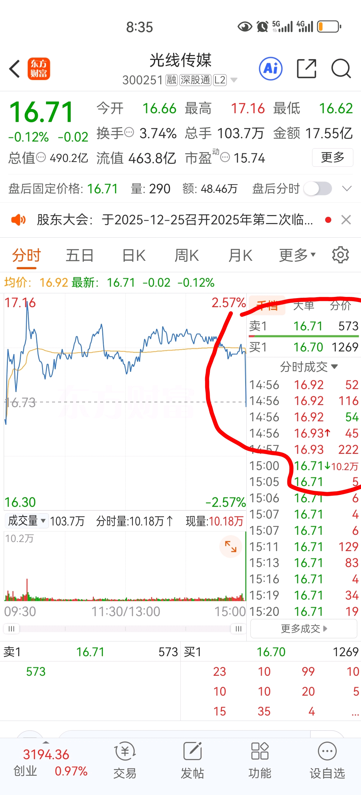大家一直关心罗牛山连续两天尾盘跌,其实根本不用担心,今天是基金最后卖出的时候,下周再也不会有人砸盘了。比如光线传媒今天尾盘集合竞价跌了一个多点,主要是指数调整生效日(今天由中证500调入沪深300指数),尾盘异动几乎可以确定与调仓相关,非大家正常心看待即可,没有什么问题!