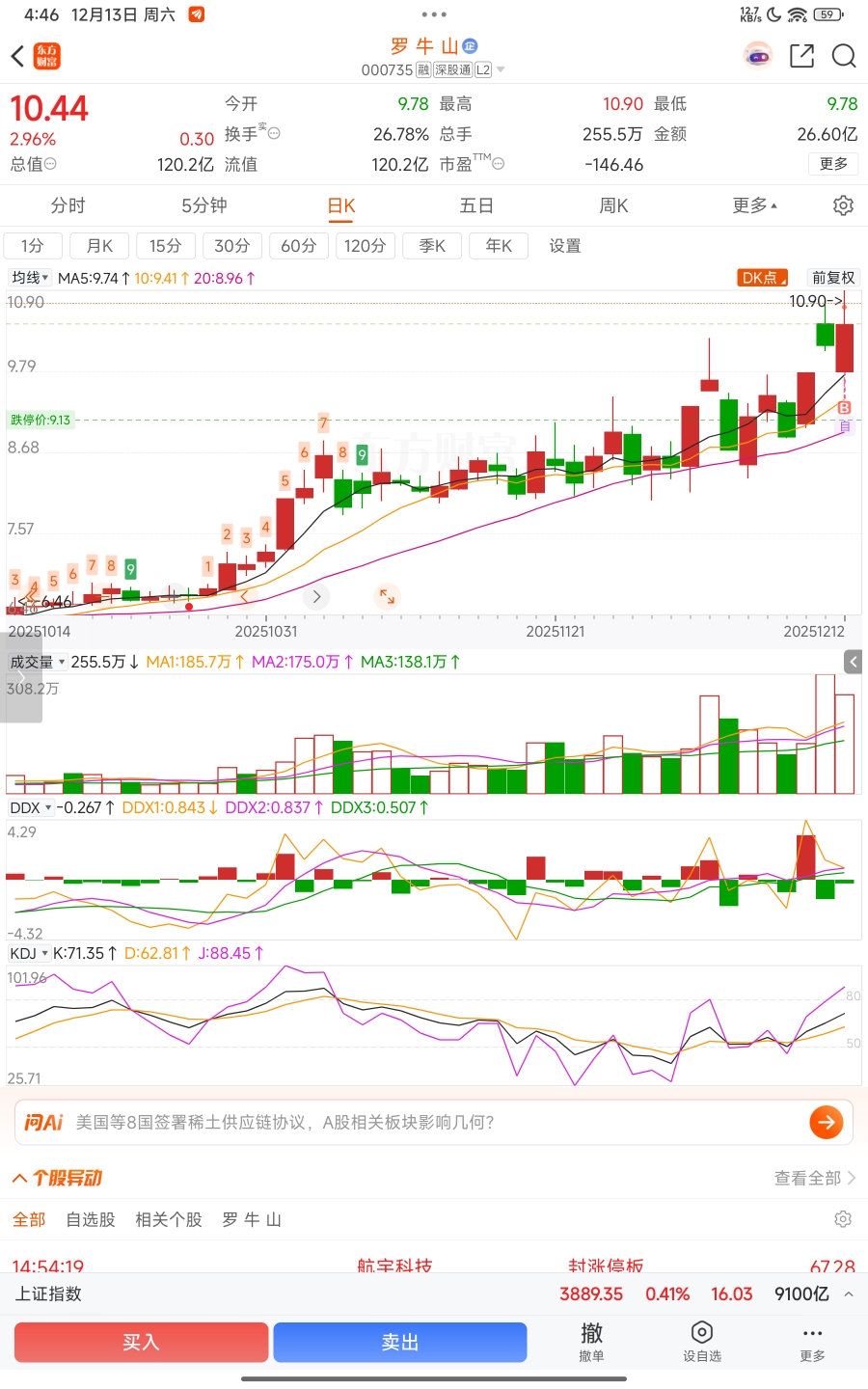 #周末杂谈# #实盘记录# 周五小仓位买入罗牛山,做个小底仓,海南自贸区封关在即,会有一波行情,作为板块的龙头之一,走势方面,均线多头排列,资金面也很积极,第一时间主动拉升,周五小震仓洗盘,底部有支撑,接下来看多,下周有肉吃,就看吃大肉还是小肉,走势好,加仓,走势弱,清仓!