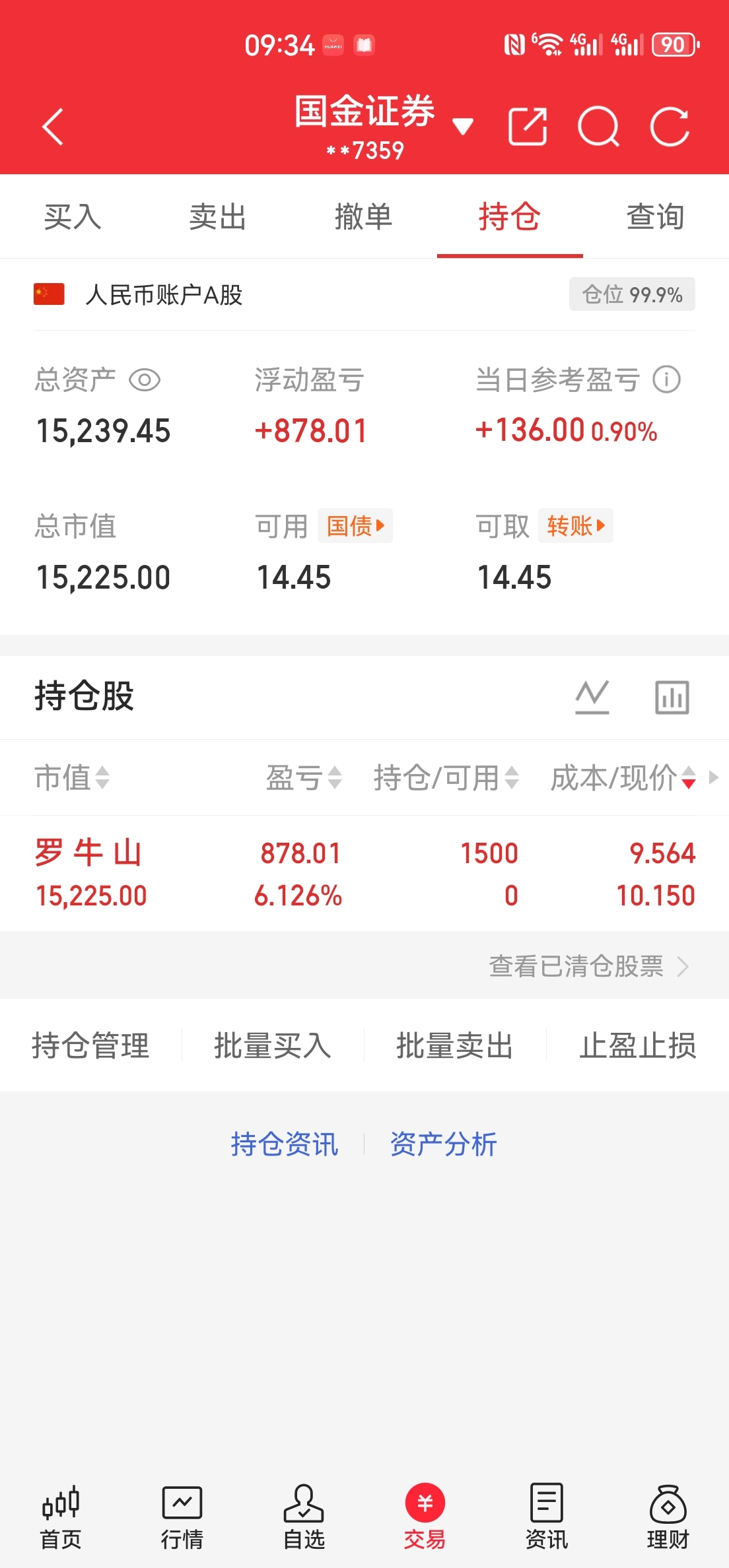 一万到一百万第40天,罗牛山做了一个T,继续持有