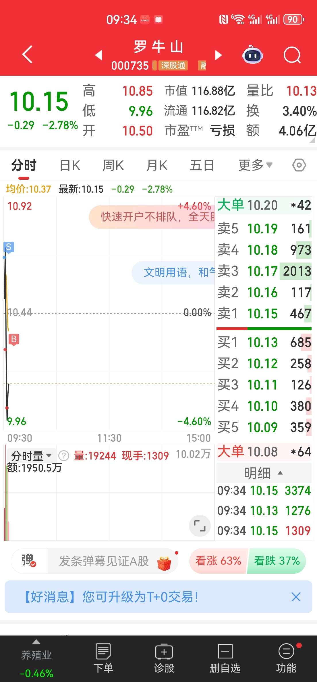 $罗 牛 山(SZ000735)$ 一万到一百万第40天,罗牛山做了一个T,继续持有