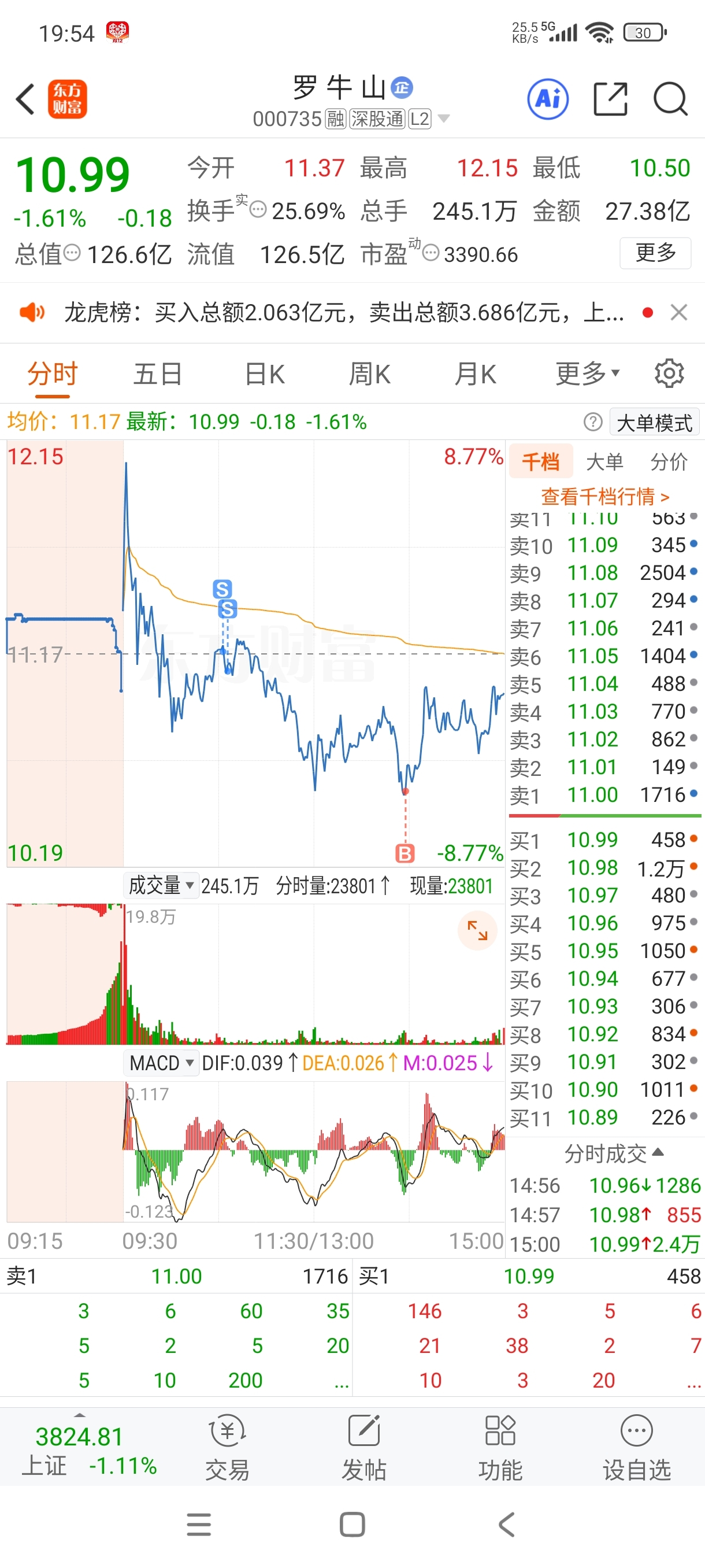 $罗 牛 山(SZ000735)$ 很郁闷,早上犹豫格局