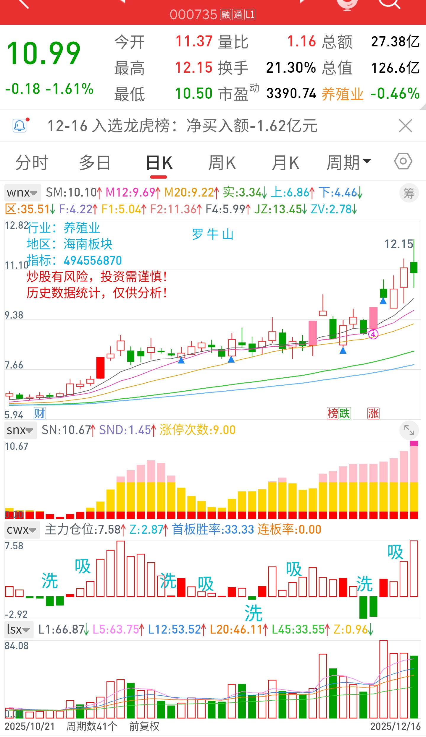 $罗 牛 山(SZ000735)$ #收盘点评# #复盘记录# #股市怎么看# #强势机会# #投资干货# k线上看是跟中阴线,并没有下探SM,虽然创了新高,但是也还跌了。