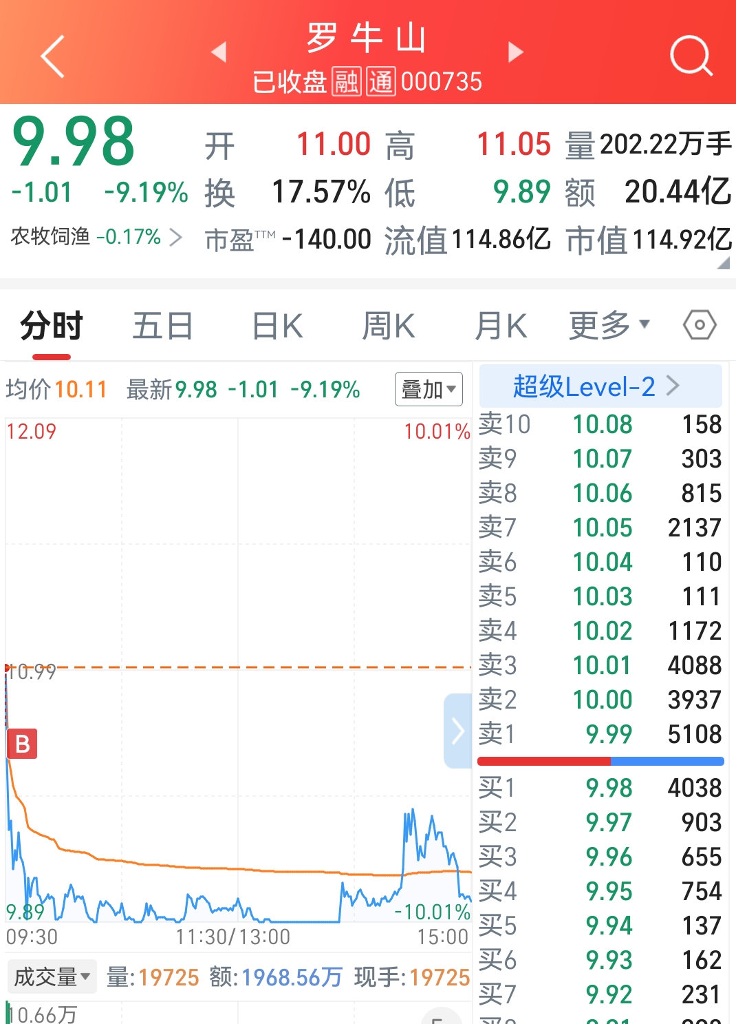 $罗 牛 山(SZ000735)$ 罗牛山我今天亏了两头牛,四万,集合竞价进的,主力太不是东西了,就这么搞