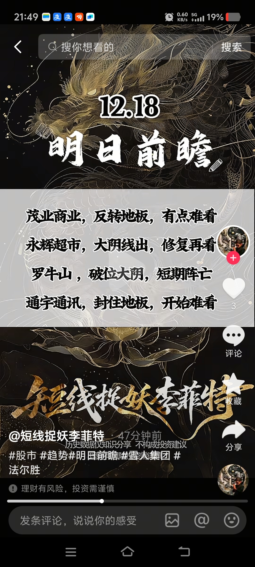 郑重声明:用户在财富号/股吧/博客等社区发表的所有信息(包括但不限于文字、视频、音频、数据及图表)仅代表个人观点,与本网站立场无关,不对您构成任何投资建议,据此操作风险自担。请勿相信代客理财、免费荐股和炒股培训等宣传内容,远离非法证券活动。请勿添加发言用户的手机号码、公众号、微博、微信及QQ等信息,谨防上当受骗!