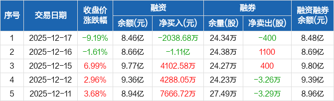 罗牛山:融资净偿还2038.68万元,融资余额8.46亿元(12-17)