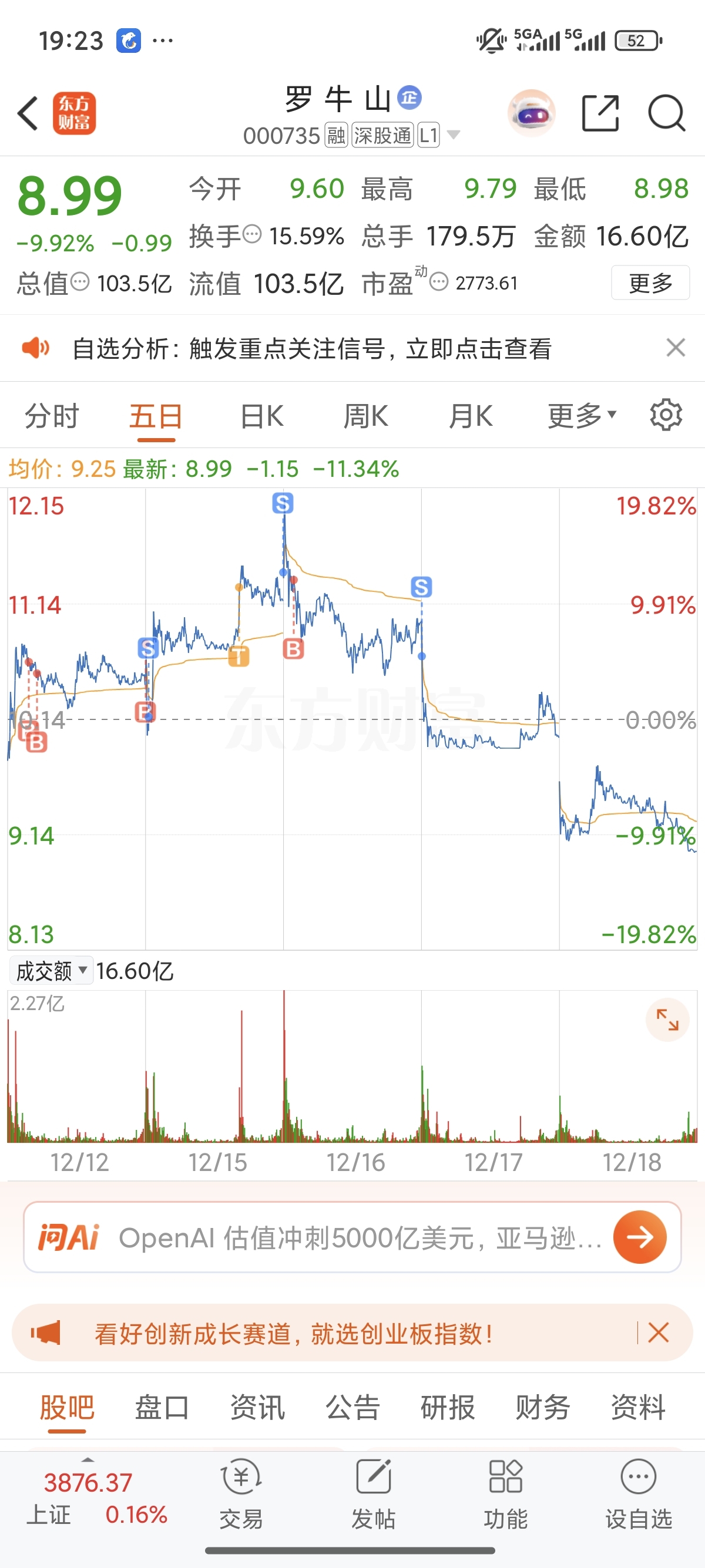 $罗 牛 山(SZ000735)$ 少亏17个点