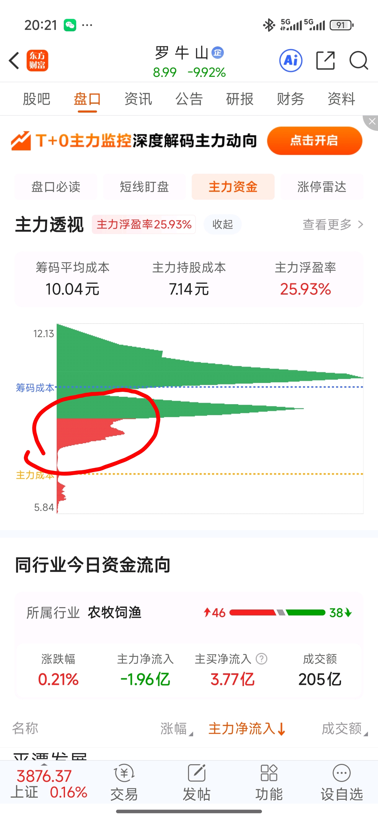 $罗 牛 山(SZ000735)$ 筹码明显有松动,估计还得跌,明日