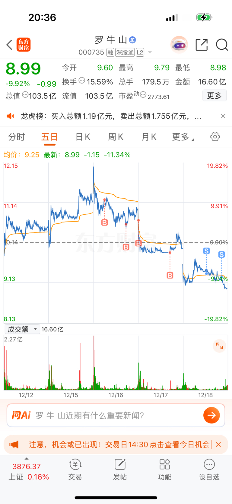 $罗 牛 山(SZ000735)$ 海马亏了2000 海药亏了5000 感觉罗牛山比较强势,全场买入,吃了三个跌停,海南不能碰长记性了,兄弟们,你们自己看吧