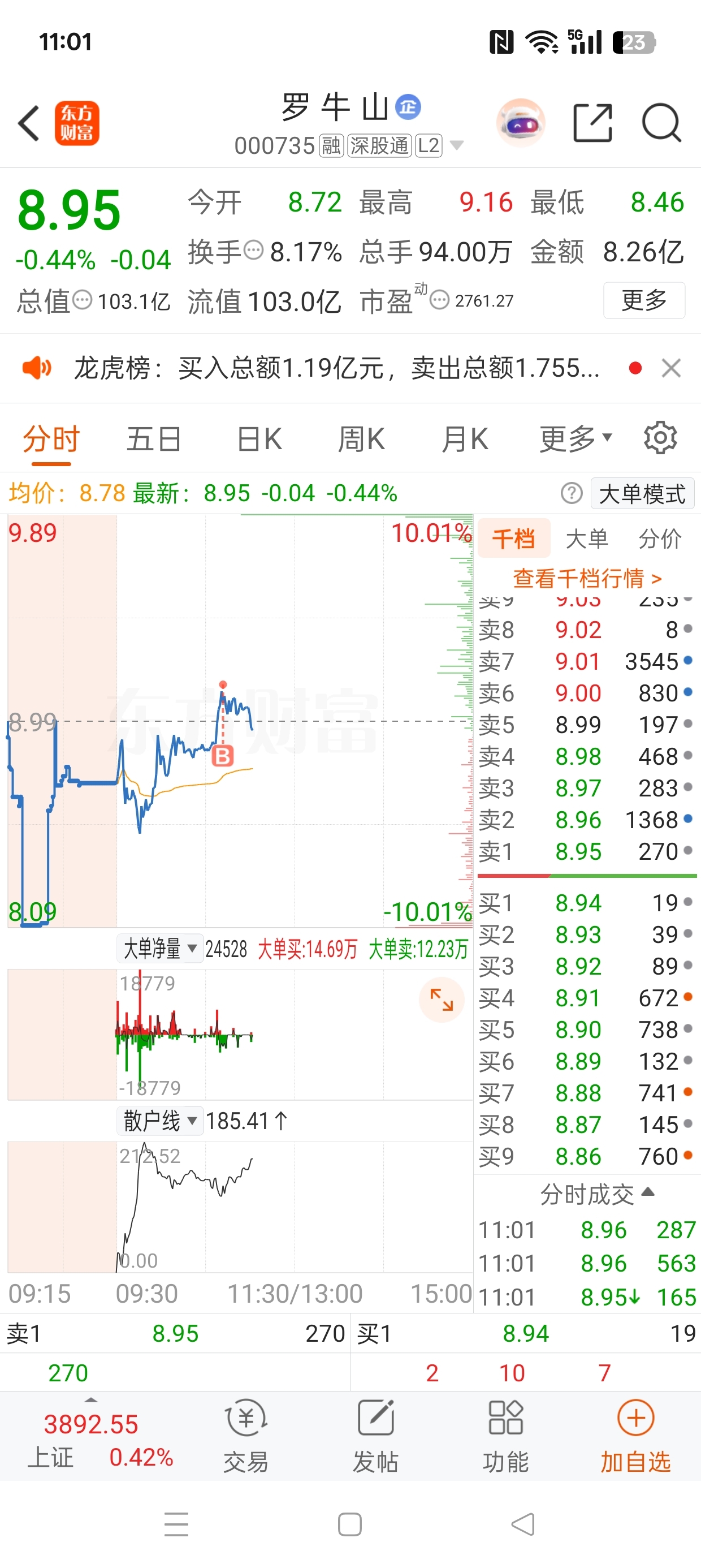 $罗 牛 山(SZ000735)$ 被自己操作笑到了