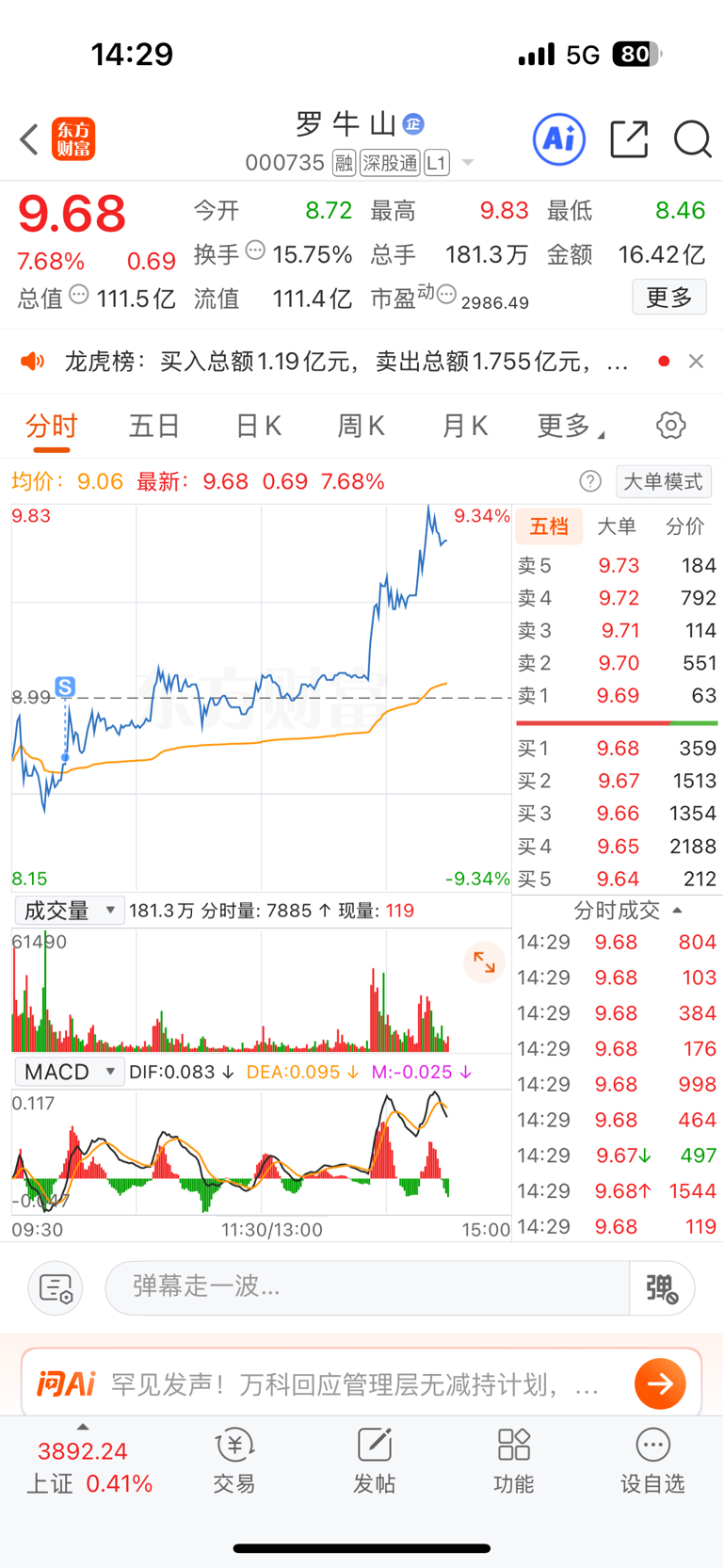 $罗 牛 山(SZ000735)$ 是不是盯上我这三瓜俩枣了啊 一卖就飞
