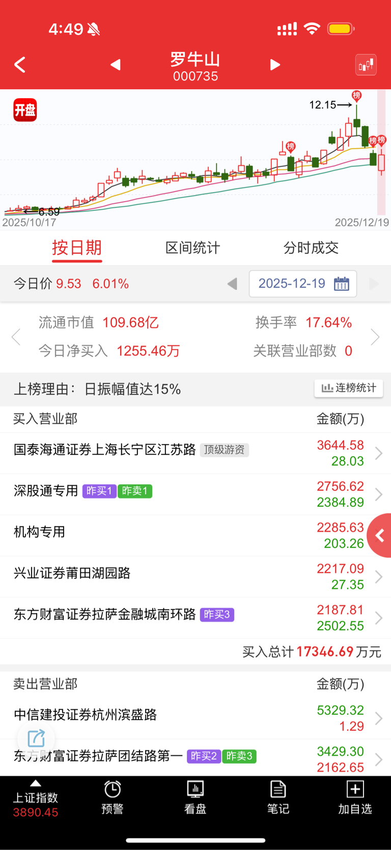 $罗 牛 山(SZ000735)$ 这是哪个游资