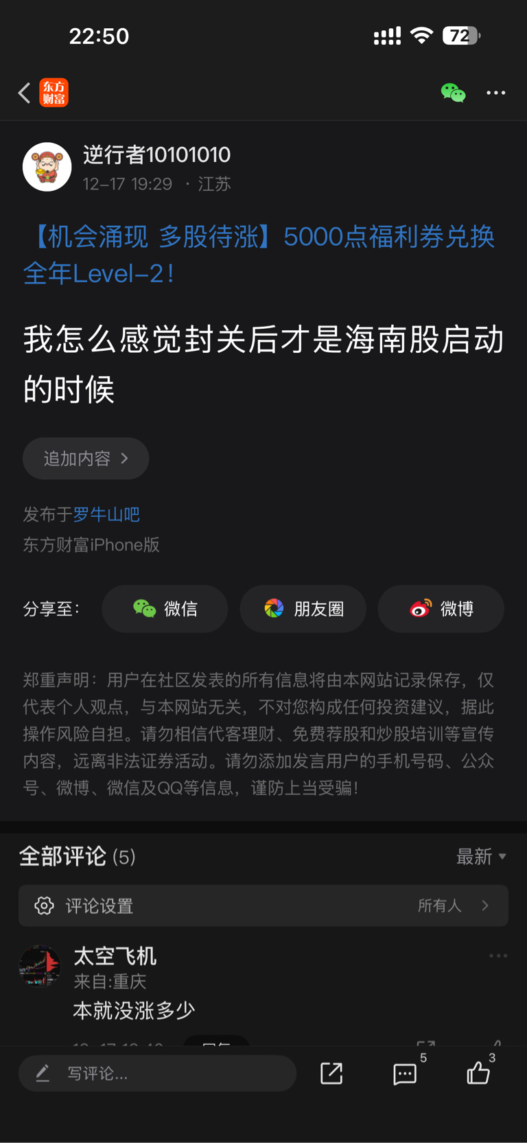 温馨提示: 1.根据《证券法》规定,禁止编造、传播虚假信息或者误导性信息,扰乱证券市场;2.用户在本社区发表的所有资料、言论等仅代表个人观点,与本网站立场无关,不对您构成任何投资建议。用户应基于自己的独立判断,自行决定证券投资并承担相应风险。《东方财富社区管理规定》