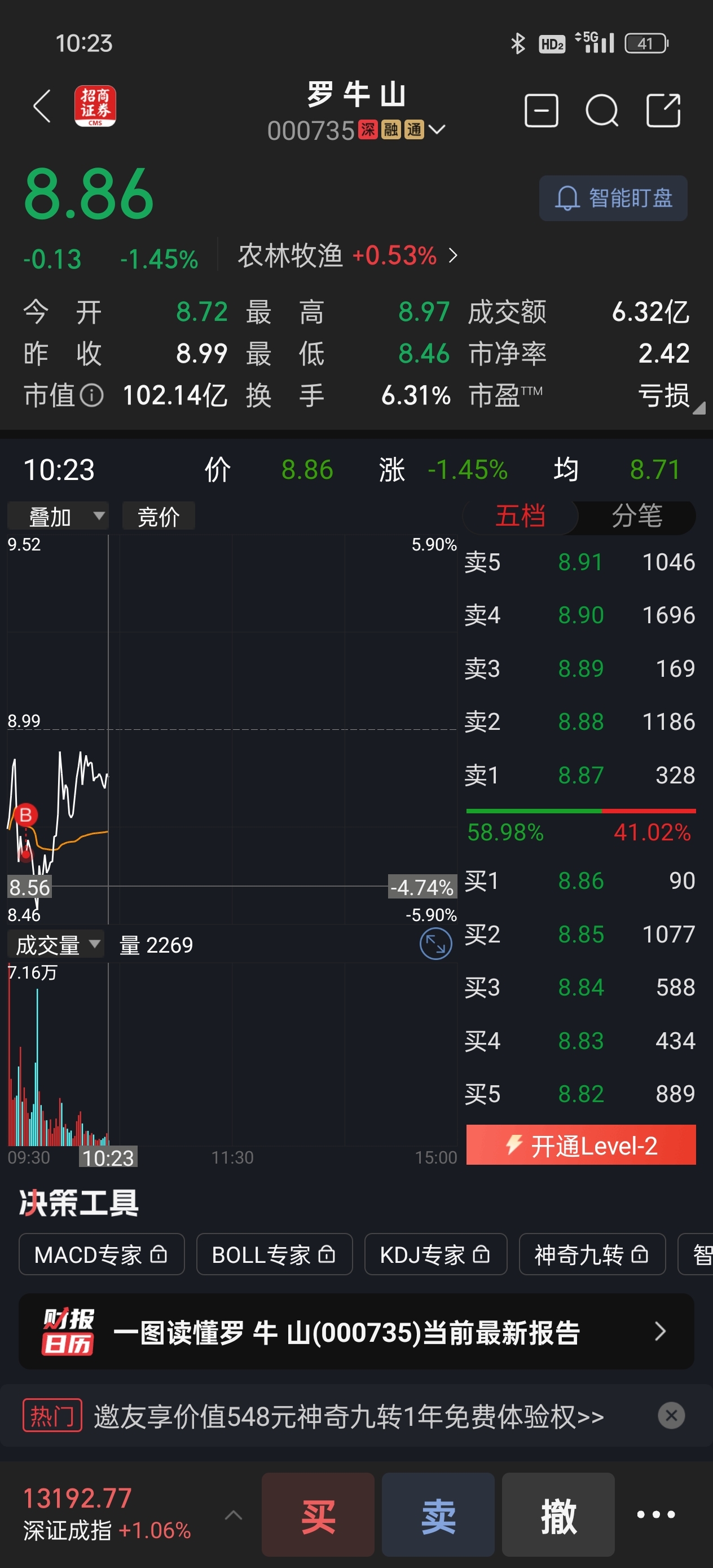 $罗 牛 山(SZ000735)$ 继续维持看多不变,这不就20%的涨幅了嘛。