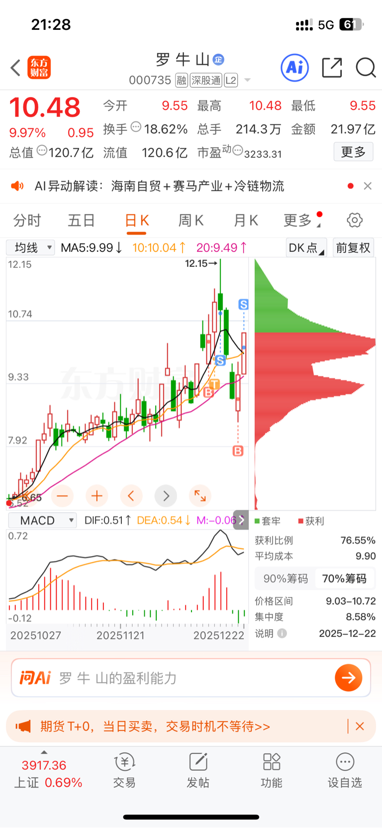 $罗 牛 山(SZ000735)$ 被12月16号搞怕了,没有及时做T