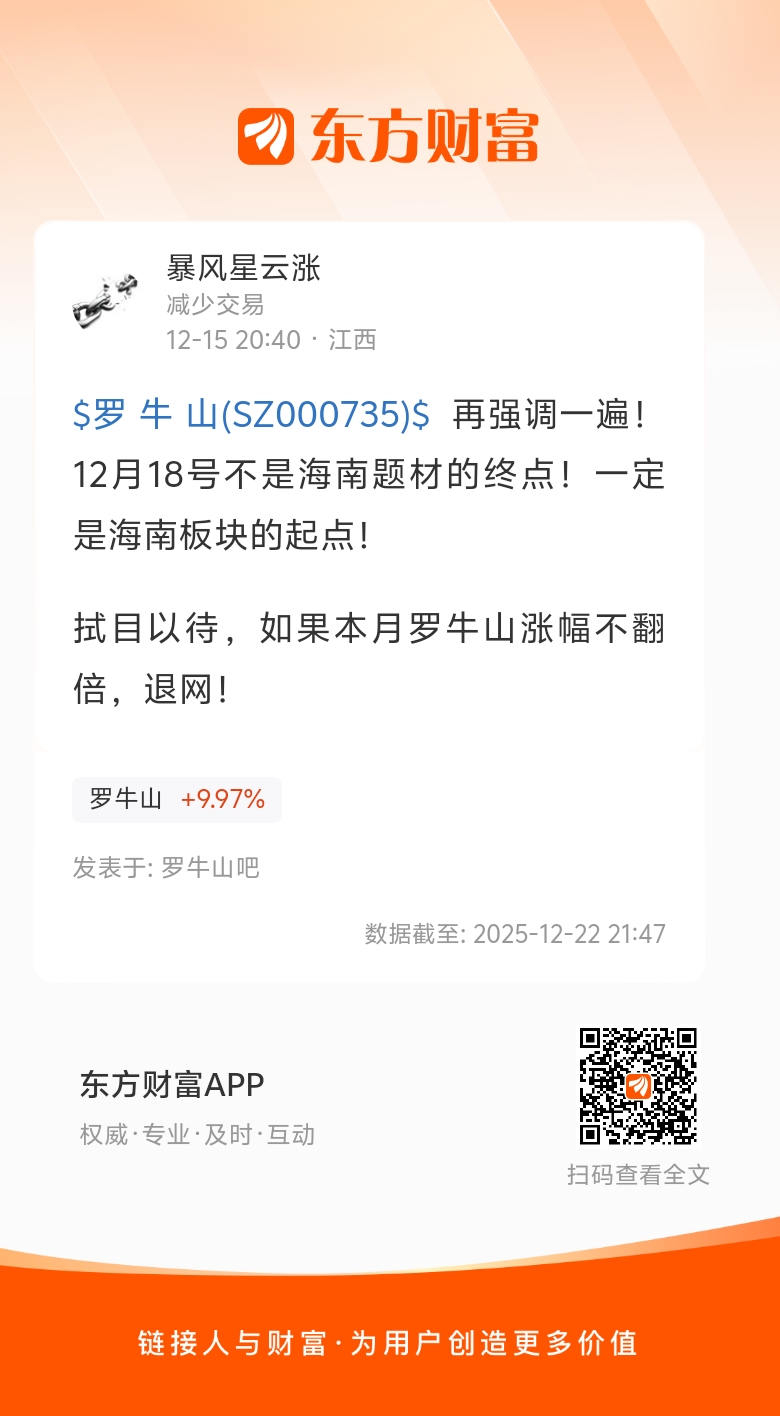 $罗 牛 山(SZ000735)$ 再强调一遍!12月18号不是海南题材的终点!一定是海南板块的起点!