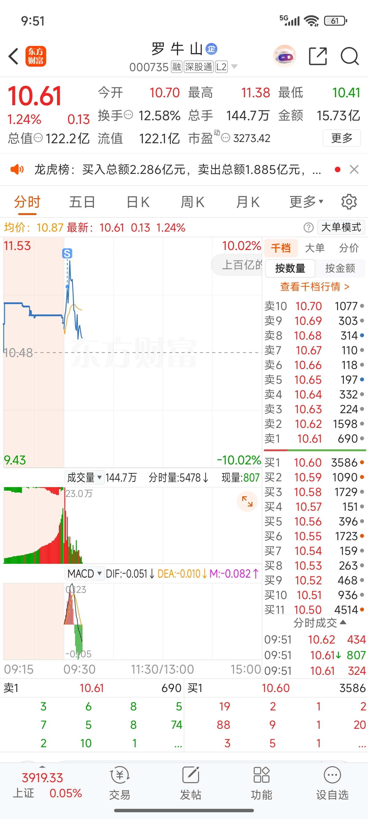 $罗 牛 山(SZ000735)$ 兄弟们我跑了,祝里面的发财