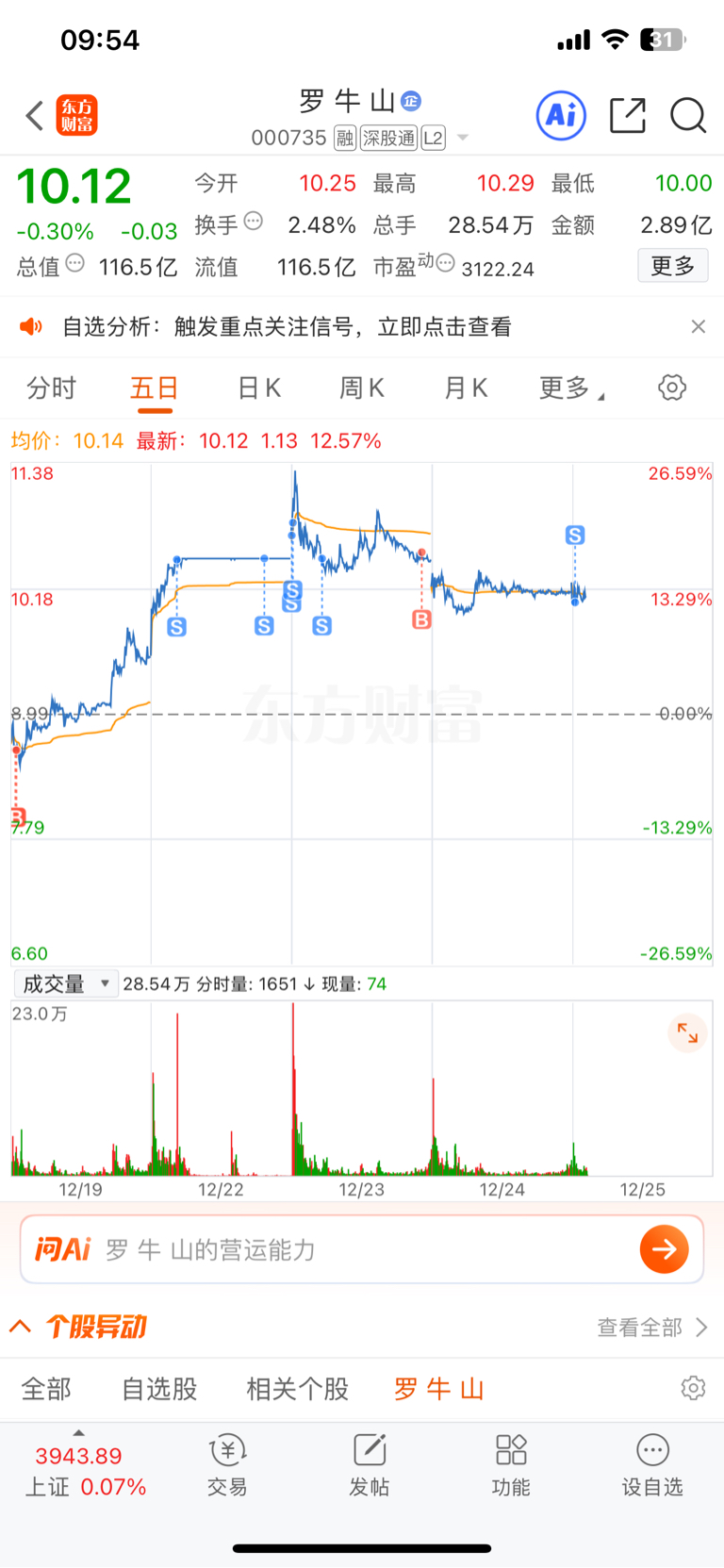 $罗 牛 山(SZ000735)$ 100股也卖了,只搞龙头!!!杂毛不碰了